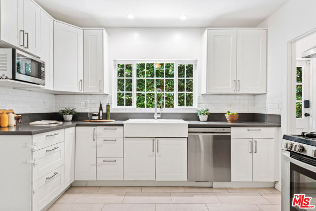 Discover the charm of this meticulously renovated three-bedroom, two-bathroom Spanish home in the desirable Castle Heights neighborhood, just south of Beverlywood HOA. Enhanced by a detached permitted bonus room, this residence offers versatile options for a home office, gym, art studio, or playroom. Upon entry, the home exudes warmth and elegance with abundant natural light illuminating the spacious living room that flows seamlessly into a formal dining area, ideal for both entertaining and everyday living. The updated kitchen features sleek quartz countertops, stainless steel appliances, and a breakfast nook, creating a perfect space for culinary exploration. All three bedrooms are generously proportioned, including an ensuite master bedroom, ensuring comfort and privacy. Hardwood floors throughout add a touch of timeless sophistication. Outside, the grassy rear yard is enveloped by hedges, providing a tranquil retreat with a lush, park-like ambiance and ample privacy. A convenient off -street carport, pre-wired for electric vehicle charging, boasts an automatic security gate for added convenience and peace of mind. A side walkway leads to the detached bonus room, offering a separate entrance that enhances privacy and accessibility for guests or additional activities. The property is adorned with gorgeous landscaping, enhancing its curb appeal and creating a welcoming environment. Residents can enjoy proximity to charming shops and restaurants on South Robertson and Culver City Platform, catering to diverse tastes and lifestyles. Families will appreciate the highly regarded Castle Heights Elementary School within close reach, rounding out the appeal of this exceptional home in one of Los Angeles' most coveted neighborhoods.